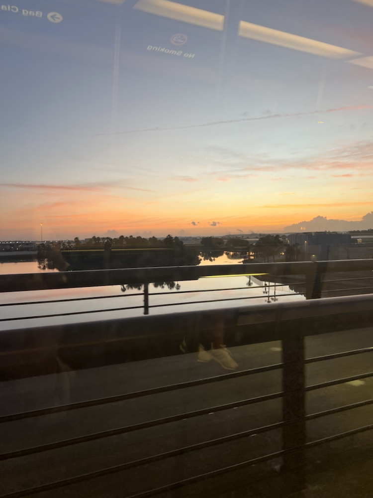 When I stepped off the plane, it was a wave of heat. It also smelled like the reptile room at the Hogle Zoo. I had no idea where I was going so walked around until I found a shuttle where I got to watch the sunrise from there